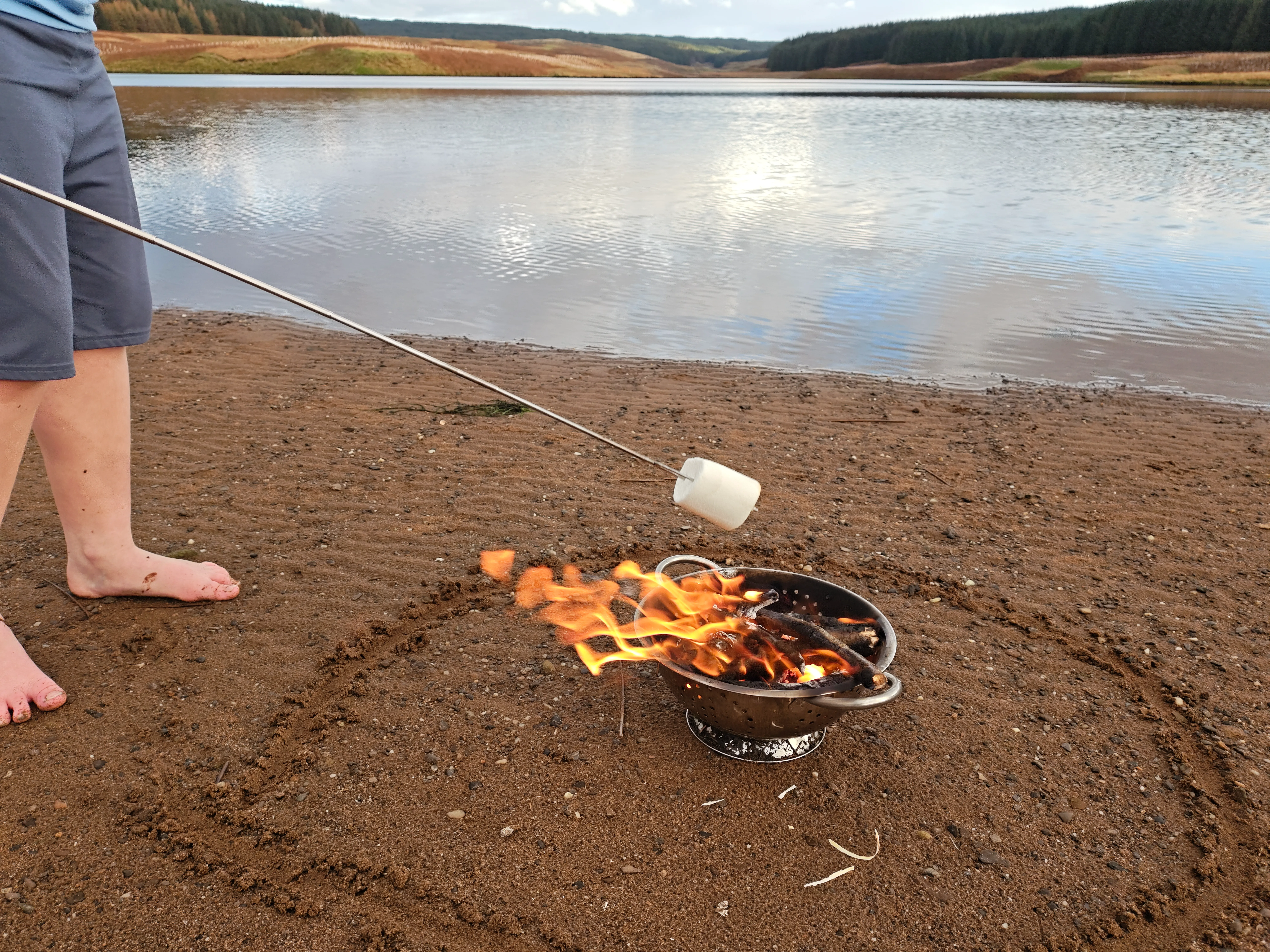Children might spend time paddling or fishing at the reservoir (we’re very lucky to have a small beach in front of our site and the reservoir is really shallow for a long way out), building elaborate dens, visiting the chickens and collecting eggs, meeting our guinea pigs (Lily, Hermione, Molly, Minerva, Ginny and Luna), using the mud kitchen, crafting with natural materials, or toasting marshmallows over the fire.